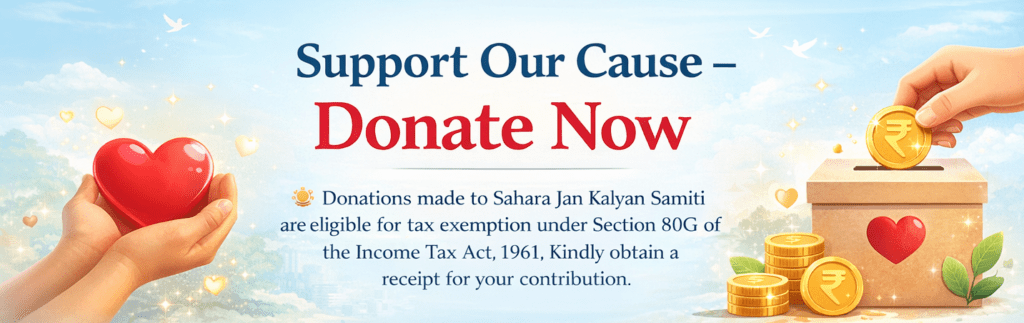 🪔 Donations made to Sahara Jan Kalyan Samiti are eligible for tax exemption under Section 80G of the Income Tax Act, 1961. Kindly obtain a receipt for your contribution.